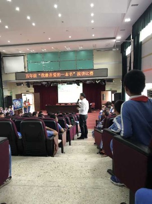 2018年11月2日下午,同乐主力学校五年级语文备课组在电教室举办了“我最喜欢的一本课外书”演讲比赛。来自五年级的8名选手进行了激烈角逐。
