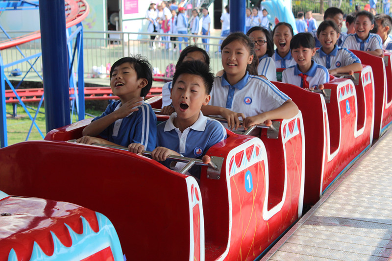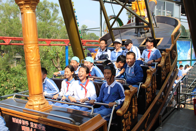 活动中,学生们在机动游乐场畅玩了幸福摩天轮、太空漫步、枪林弹雨射击馆、碰碰车、滑行龙、海盗船等机动游乐嘉年华项目,并在军事体育拓展基地中,参与了毛毛虫、大脚板等游戏。学生们走进自然、体验不一样的精彩项目,提升了团队合作能力,磨练了自身勇气。