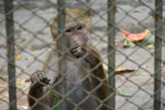 在导游的带领下,孩子们列队前行。同学们没有尖叫和喧哗,而是一边饶有兴致地观察小动物,一边仔细倾听导游的详细介绍。隔着护栏,孩子们热情地跟鳄鱼、猴子等动物打起了招呼,开心得不得了。在园区内,同学们看到了最想看到的大老虎。老虎们有的懒散地躺在草地上晒太阳,有的在散步,而周边环境是如此地和谐,安宁。