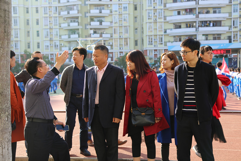 当天上午,平山第二中学钟雄斌校长热情接待了工作室一行。参与此次交流研讨活动的还有平山二中行政人员、骨干教师和惠东县罗赵华名班主任工作室全体成员。在钟雄斌校长的陪同下,工作室一行参观了校园,观摩了学校特色大课间活动。