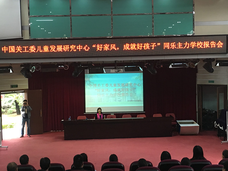 为了提升我校家长先进的教育理念,中国关工委儿童发展研究中心专家闻欣老师11月28日下午应邀来到我校,为家长们开展以《好家风,成就好孩子》为主题的家庭教育讲座。
