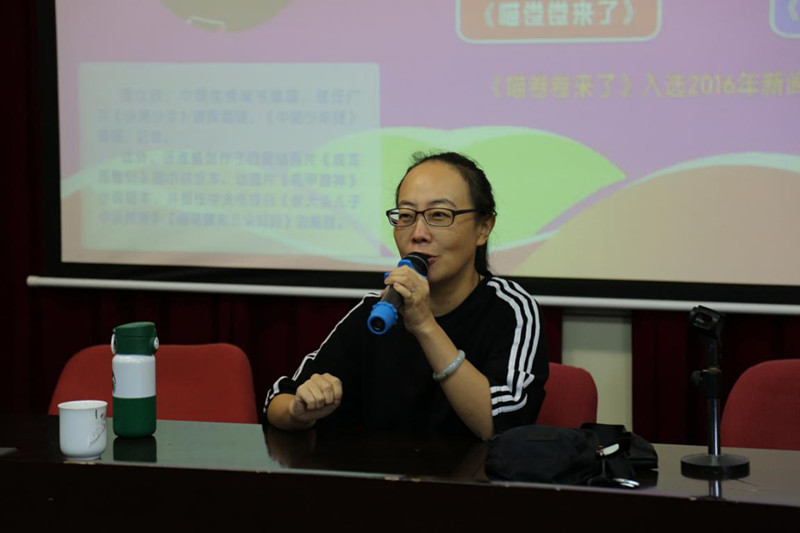 本次活动由语文科组长郑燕媚老师主持,五年级师生参与聆听。讲座伊始,郑燕媚老师对段立欣作家进行了简单介绍。段立欣是中国优秀童书编辑,曾任广东《少男少女》首席编辑,《中国少年报》编辑、记者,并担任《新大头儿子小头爸爸》《棉花糖和云朵妈妈》的编剧等。