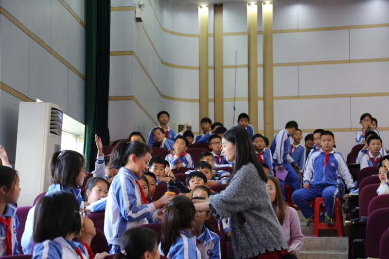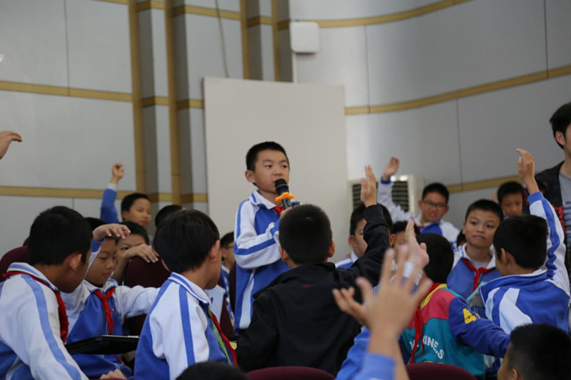随后,段立欣围绕如何想象的问题进行了解读。她结合生活中的常见事物及个人经历,提出想象力其实既简单又有用;并以丰富有趣的互动形式,对学生的想象能力、联想能力进行训练。学生们在“段老师”的启发下张开了想象的翅膀,踊跃回答问题。活动在有趣的互动中逐渐走向高潮。