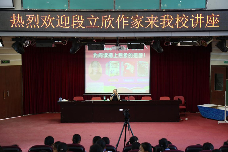为进一步推进“书香校园”的建设,培养师生爱阅读、会阅读的习惯,营造书香氛围,我校于2018年11月30日上午开展了“名家进校园”的阅读活动,有幸邀请到著名作家段立欣,为我们带来了以“为阅读插上想象的翅膀”为主题的讲座。