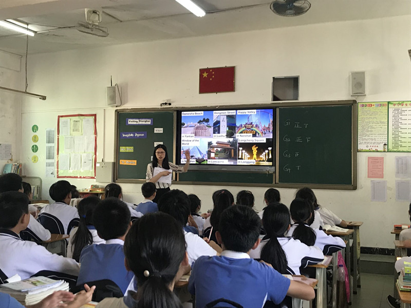负责此次送课的是我校蔡静娟老师和施欣汝老师。两位老师以《Visiting Shanghai》为课题,用不同的导入方式激发学生的兴趣,带着两个班的学生一起“游览上海”。两位老师采用小组合作的形式分配学习任务,教学流程合理有序,充分调动了学生的学习积极性以及培养了学生的批判性思维。每位学生积极参与,课堂气氛热烈。