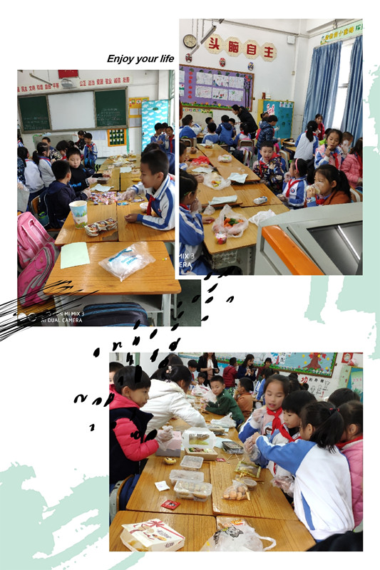 低年级的孩子们为使美食节活动更好地开展,提前制作好美食,并配上了相应的单词卡片。在整个活动过程中,每位孩子脸上洋溢着幸福的笑容。他们运用所学的知识表达对食物的喜爱,在用英语的同时享受了一场“美食盛宴”。