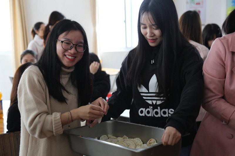 3月8日中午,学校在食堂开展了实在而有意义的手工制作包饺子活动。借此丰富女教职工的精神文化生活,促进女教职工沟通交流,以独特的方式为广大女教职工送上节日的祝福。活动现场,人头攒动,欢声笑语,热闹非凡。女教师们一边包一边互相比着,看谁包得好看,看谁包得快……不一会儿案板上便摆出了一排排形状各异,充满创意的漂亮饺子。此次包饺子活动,给女职工提供了一次展示自我、增进了解的机会,很好地体现了同乐主力学校的和谐文化和人文关怀。