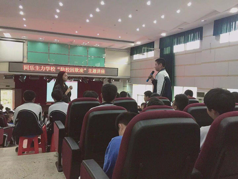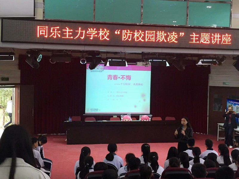 2019年3月14日下午,同乐主力学校举办一场以“青春不悔”为主题的防校园欺凌的公益讲座,七年级全体学生参加了本次讲座。