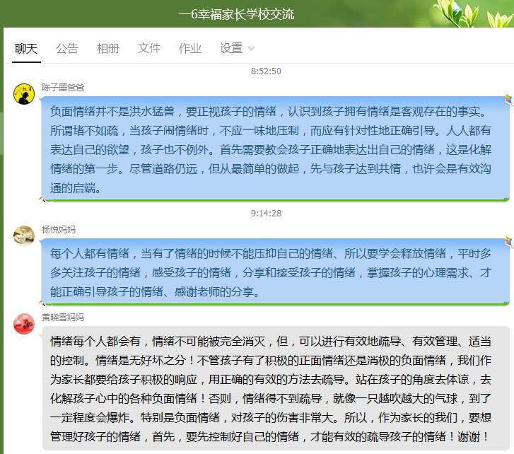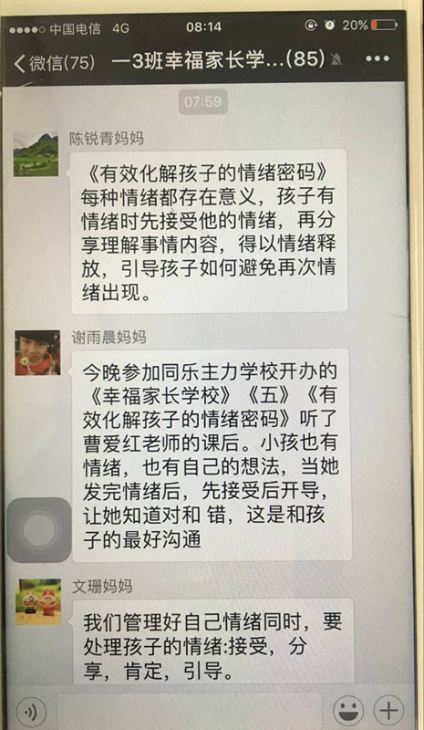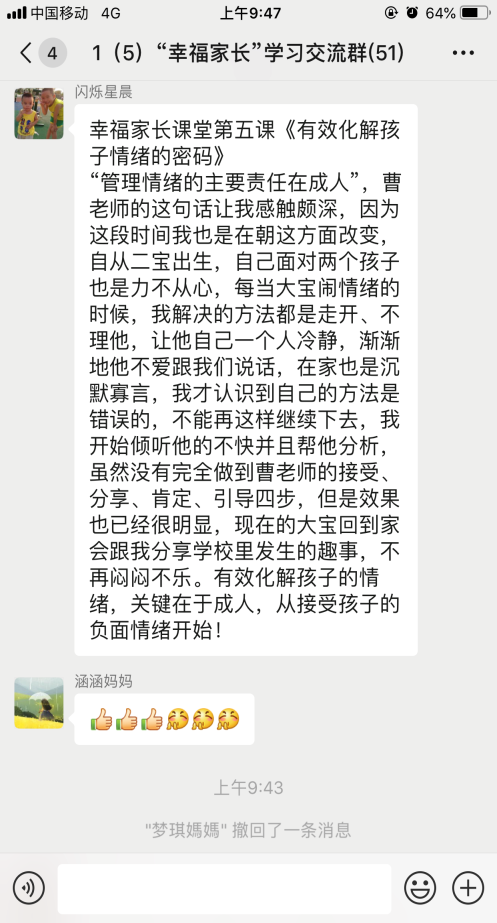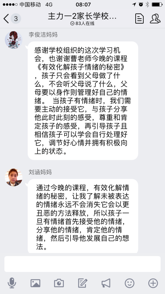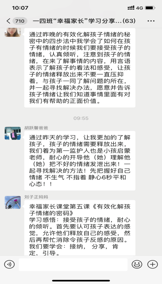 课程结束后,家长们积极踊跃地在群里分享了收获,并期待下一次课程的开展。