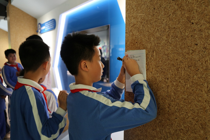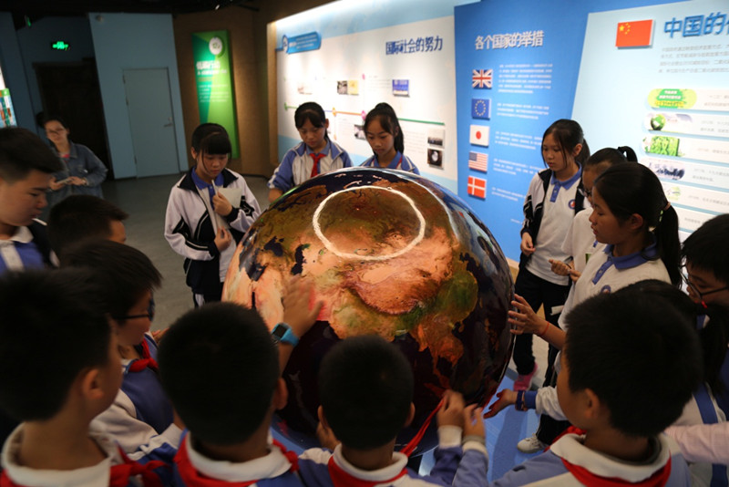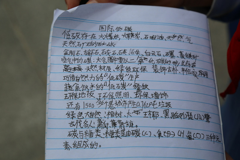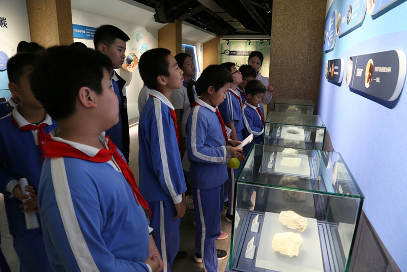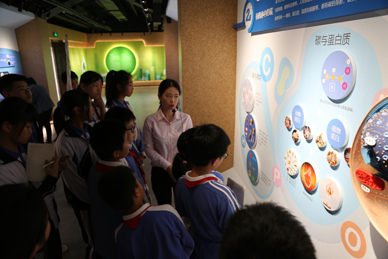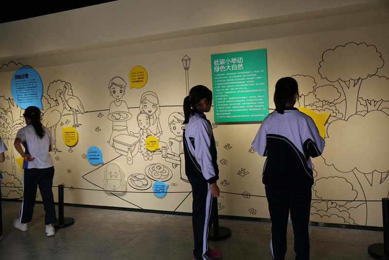讲解员从“碳的存在”、“碳的循环”、“低碳行动”、“低碳大视野”和“低碳之家”五个方面进行讲解。学生们了解了许多知识——碳在自然中是无处不在的、碳对于我们人类生活有重要作用、低碳生活对生活环境起保护作用。