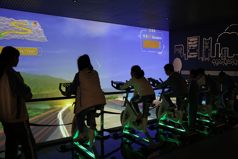 下午两点,学生们满怀期待地登上了去往低碳城的校车,一下车就被低碳城满眼的绿植和新能源设施给吸引住了。在讲解员的带领下,孩子们在丁山围屋参观了“低碳”24小时主题展。