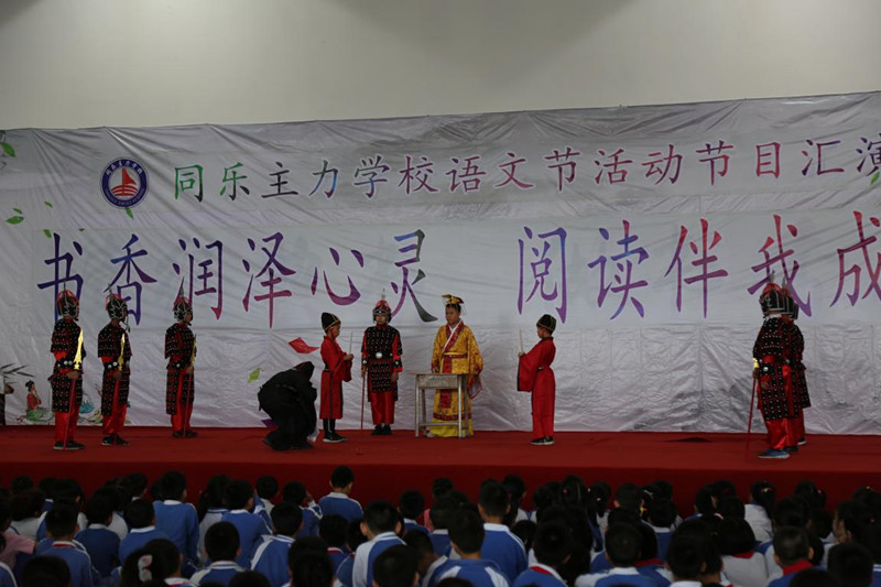 在掌声中,各年级学生把课本故事搬上舞台,一个个经典人物被演绎得惟妙惟肖。同学们大胆加入了艺术元素,使剧本文化内涵更加丰富,主题更加深刻。《小壁虎借尾巴》的活泼可爱,《从现在开始》的欣喜若狂,《将相和》的聪慧机智,《晏子使楚》的意味深长,《卖火柴的小女孩》悲惋凄凉……这些节目牢牢地抓住了同学们的耳朵,大家看得是如痴如醉……一个手势,一声呐喊,甚至是一个眼神,同学们用生动传神的表演表达了他们对作品独特而深刻的理解,传达出他们对文学和艺术的无限热爱。
