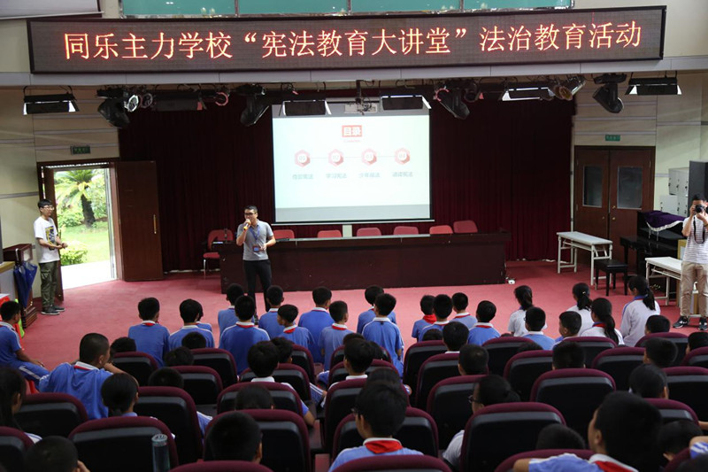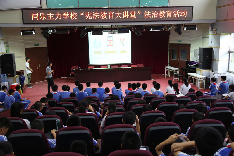 为了让学生了解法律知识,树立正确的法律意识,激发学生的学法热情,营造学校良好的法治教育环境和氛围,同乐主力学校特邀请宝龙街道司法所周明律师于2019年5月23日下午在电教室开展了一场别开生面的“宪法教育大讲堂”法治教育活动。
