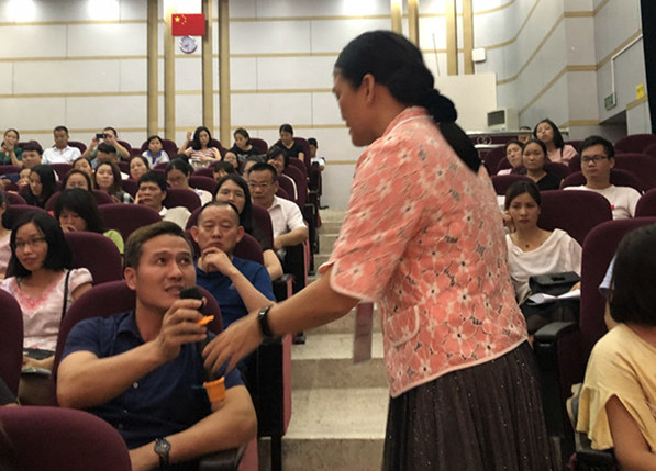 曾灵芝老师说:“陪伴就是最好的教育。”她用身边实例向各位家长详细讲述了家长陪伴的重要性以及如何实现有效陪伴。曾老师还用生动的案例,从心理学的角度分析了家长在教育孩子问题上的成功与失败的原因,指出了目前家庭教育中所存在的误区,并给出了一些可操作性、趣味性强的小妙招,赢得家长们的阵阵掌声。