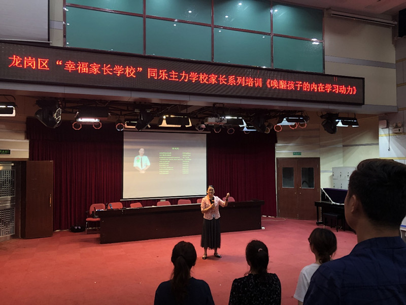 此次活动特意邀请到了深圳市家庭教育高级导师曾灵芝老师。曾老师以“唤醒孩子的学习力”为主题做了分享。她从“学习动力”、“学习能力”、“学习毅力”这三个方面进行阐释,并通过游戏、数据、视频、理论等形式为家长们呈现了一堂生动有趣的教育课。一个个精彩生动的案例,一句句合情合理的分析,在家长之间引起了强烈的共鸣。家长们表示,听了曾老师的讲座,受益匪浅,决心用新的理念来教育孩子,使孩子健康快乐地成长。