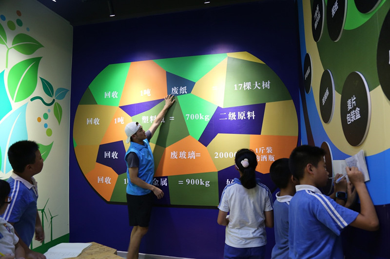 刚进入场馆,同学们既兴奋又激动。场馆工作人员热情地接待了孩子们,并带领他们参观场馆,介绍垃圾分类基本常识及分类后的垃圾处理过程。同学们仔细聆听工作人员讲解后,充分了解了垃圾的各种分类、不同生活垃圾的降解速度和垃圾分类的意义及益处。