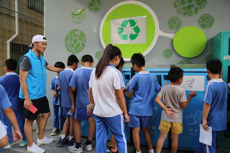 最后,工作人员还向同学们演示了智能垃圾分类回收装置,让同学们了解垃圾的分类方法。