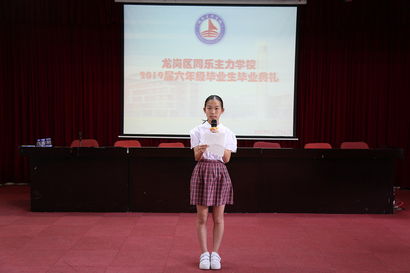 毕业生代表六(3)班程一同学的发言中流露出她对母校及老师的感谢之情。