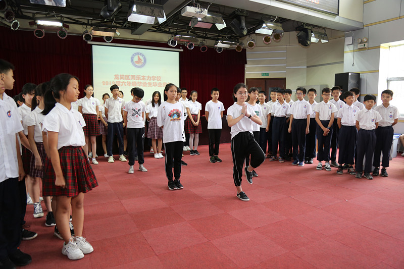六(1)班全体学生用自己的才艺展示表达对母校的依依惜别之情,他们用歌舞祝福同学们都有最美好的未来。