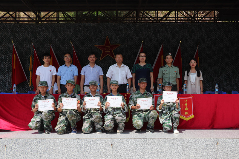 结营仪式上,德育处领导宣布了获得优秀班级和优秀学员的名单,校领导为获奖班级和学生颁奖。教导处李主任做了总结讲话。他充分肯定了本次综合实践活动的成果及汇报表演取得的成功,希望大家继续发挥活动中培养的优良作风,以更饱满的精神状态投入到初中生活中去。随后,郭校长为基地赠送了锦旗。