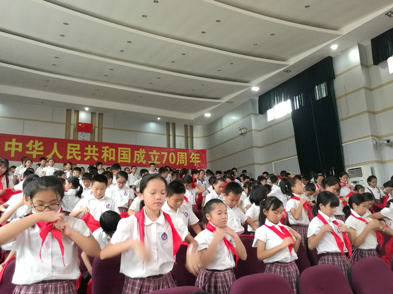 为了深入贯彻习近平总书记在北京市海淀区民族小学参加少先队主题队日活动时的重要讲话精神,增强少先队员在少先队组织的光荣感、归属感,结合我校少先队工作,同乐主力学校大队部决定在即将来临的建队日举办“红领巾与祖国共成长,争做新时代好队员”五年级换戴大号红领巾主题活动。
