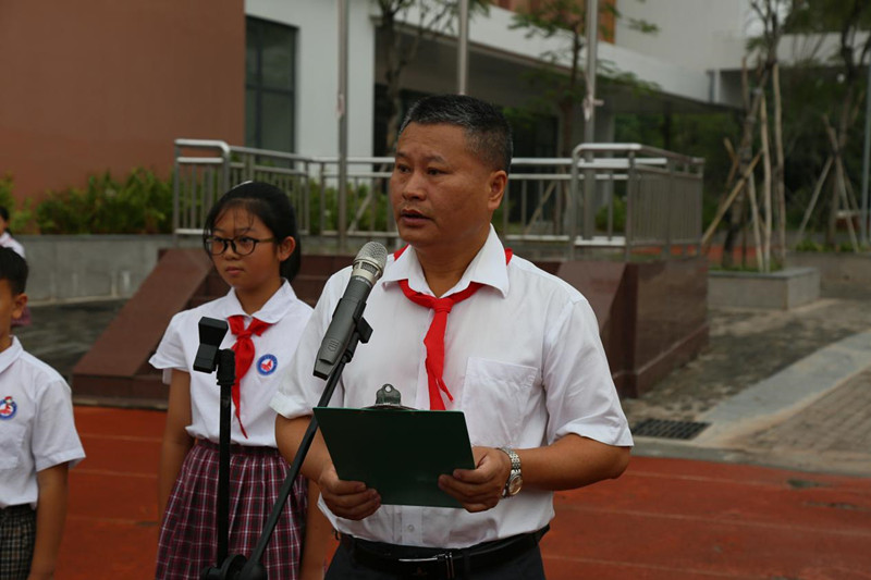 七年级中队辅导员代表高苑华老师代表七年级中队辅导员进行了发言。高老师号召全体同学用“善行”的接力棒,将少先队的光荣传统传承下去,让“善行”的种子在校园生根发芽。