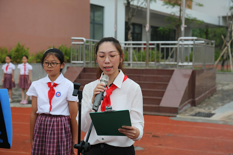 接下来,大队辅导员张家玲老师带领全体少先队员进行了呼号。全体少先队员高呼:“时刻准备着为共产主义事业而奋斗”。