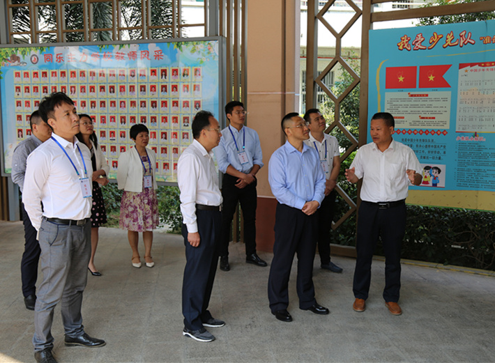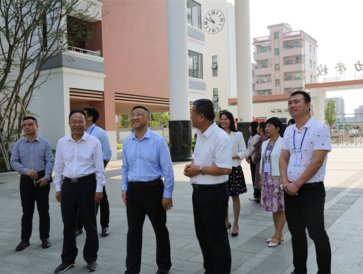 在郭校长的陪同下,深圳市教育局蔡茂洲主任督学、龙岗区教育局罗丹主任督学、龙岗区教育局黄映督学以及王岩督学工作室全体成员、学员先参观了同乐主力学校。恢弘大气的教学楼、充满文化氛围的“善·行”长廊、硕果累累的果山等给大家留下了深刻的印象。各级领导表示同乐主力学校在校园文化建设方面规划周全,别树一帜。