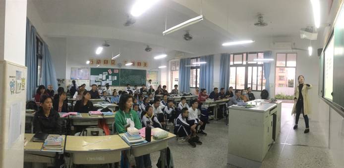 年级集中会议结束后,家长们来到了孩子们的教室参加班级家长会。语文、数学、英语、物理和历史科组的各位老师依次上台,对孩子们两个月以来取得的进步进行了表扬,对目前还存在的问题提出了建议,对第19周将要迎来的期末质量检测表示期待。