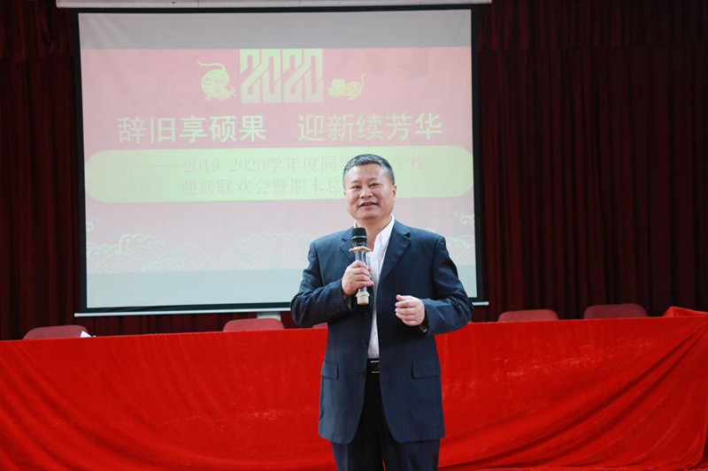 郭庆文校长回顾了学校成长发展的一年,也展望了学校的突破性举措,并对教职工表示感谢与祝福。他认为,2019年处处是感动、事事皆欣喜——学校的教育教学质量有所提升、校容校貌得到进一步改善。他坚信,主力人定能保持奋进姿态,在教育路上昂首向前。