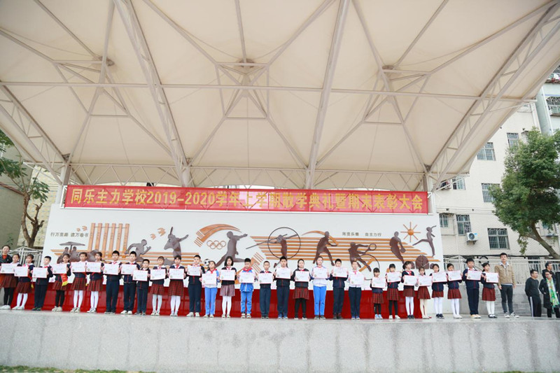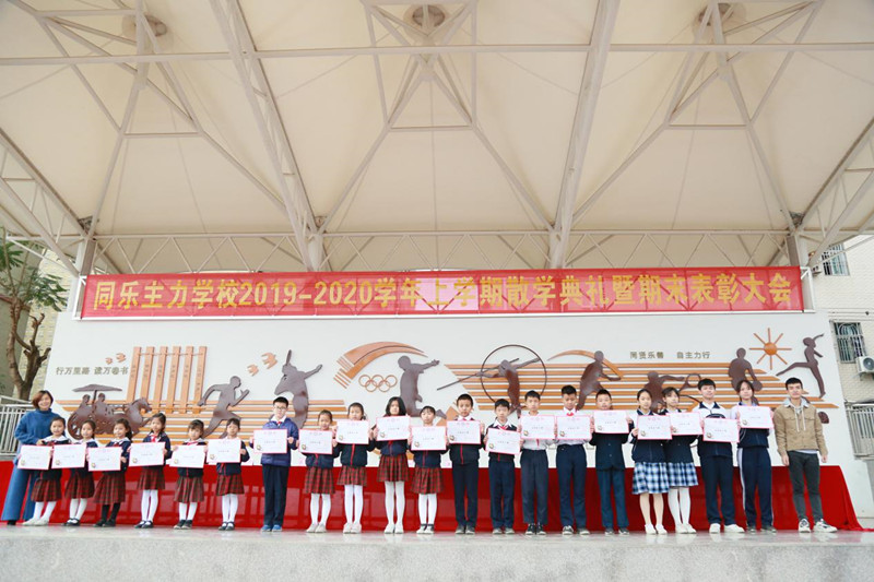 为表彰本学期各方面有突出表现和进步的学生,激发全体师生工作与学习的热情,1月17日下午,同乐主力学校2019-2020学年第一学期散学典礼在学校绿茵场举行。学校行政班子和全体师生齐聚现场。散学礼由德育处李建新主任主持。