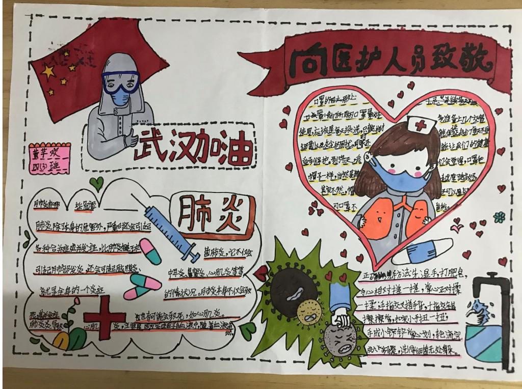 我们知道这是一场没有硝烟的战斗,在疫情蔓延的危难之际,有这么一群逆行者冲向前线护卫我们的生命,但肆虐的病毒却无情地带走了他们的生命。队员们用自己手绘的图像、手抄报、电子报等向逆行先锋们致敬!队员们在这场疫情爆发的过程中,不仅学习了怎样“做真人,讲真话”,什么是“勇担当,尽责任”,相信在队员们的心中也默默种下了一种理想信念,树立了一个个值得学习的英雄楷模。