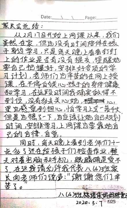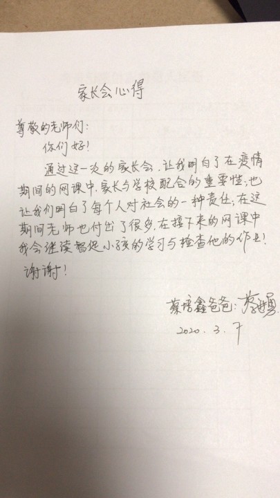 家长们的手写感言: