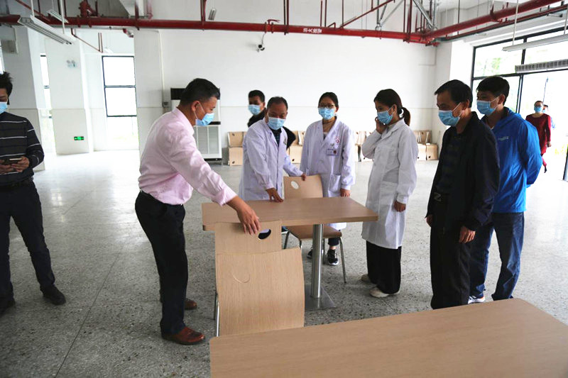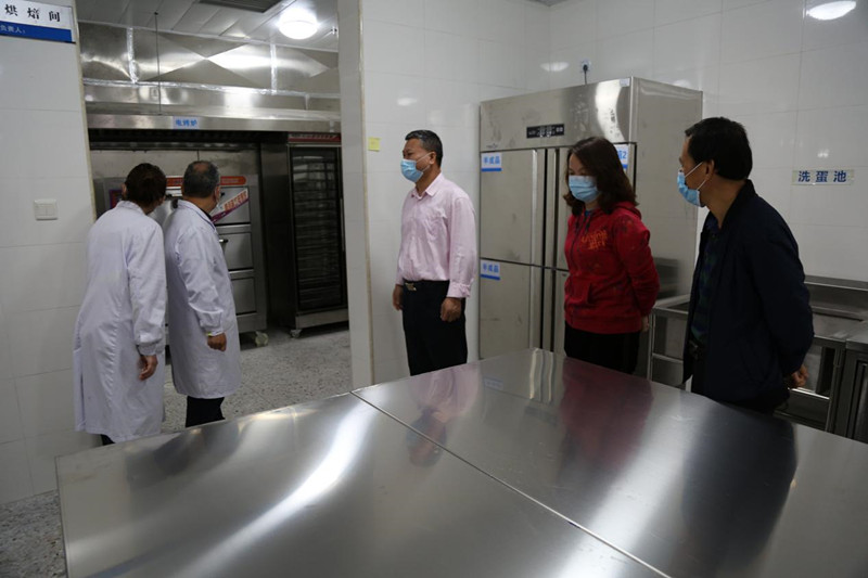 对口协作医生及我校领导、教师亲临饭堂检查、指导防疫相关工作。