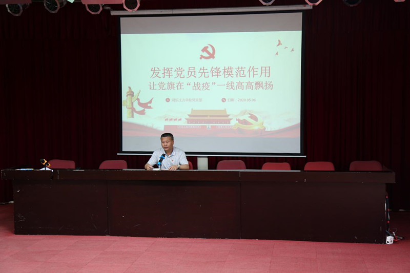 为进一步强化学校疫情防控工作,提高开学后疫情防控和应急处置的能力,充分发挥党员先锋模范作用,2020年5月6日上午,同乐主力学校党支部开展了以“发挥党员先锋模范作用,让党旗在‘战疫’一线高高飘扬”为主题的书记讲党课专题活动。