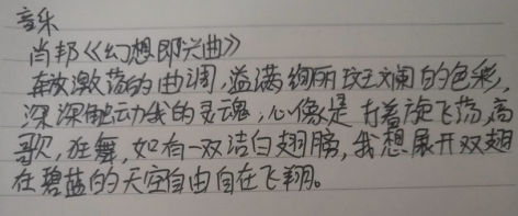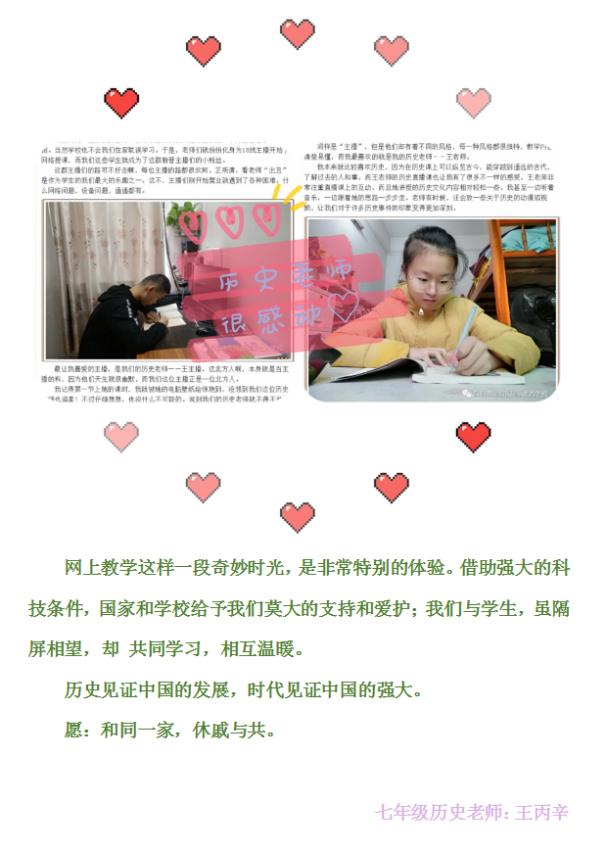 疫情期间大家都是第一次进行网络教学,遇到了不少的挑战和困难。不管是网络信号不佳,还是场地的限制,这些都没有阻挡老师们的教学热情。每位老师都高度重视,认真备课并寻找优秀的教学资源,采用直播或录播的方式上课。体育和心理课的开展为学生们在这段特殊时期的身心健康提供了有力保障,音乐、美术、书法、信息课等的开设又让学生们居家抗疫期间的学习生活变得丰富多彩。