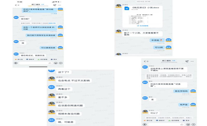备课组的老师还经常进其他老师的直播间,及时跟进,发现问题及时调整。有时候,因为一些新功能大家都不确定能不能用,就经常在备课组或科组先试播。在互帮互助的工作氛围中,大家在线教学遇到的技术难关都迎刃而解。