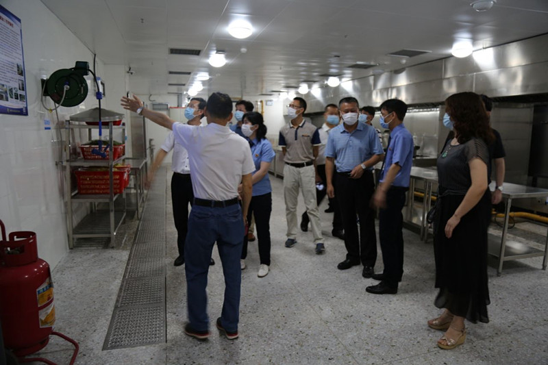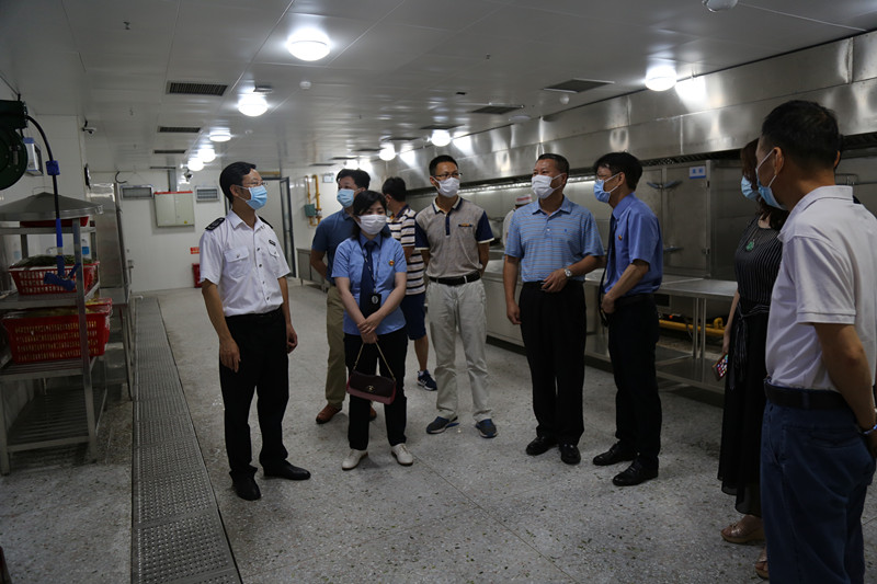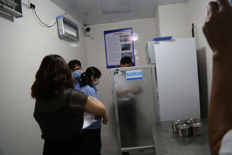 食堂负责人杨玉嫦副主任导引了这次督查活动。督查小组对烹调间、收货检测区、主食仓库、副食仓库、蔬菜加工区、鱼肉类加工区、餐具清洗区、配餐间等厨房重地进行了严格检查;尤其检查了留样冰箱。