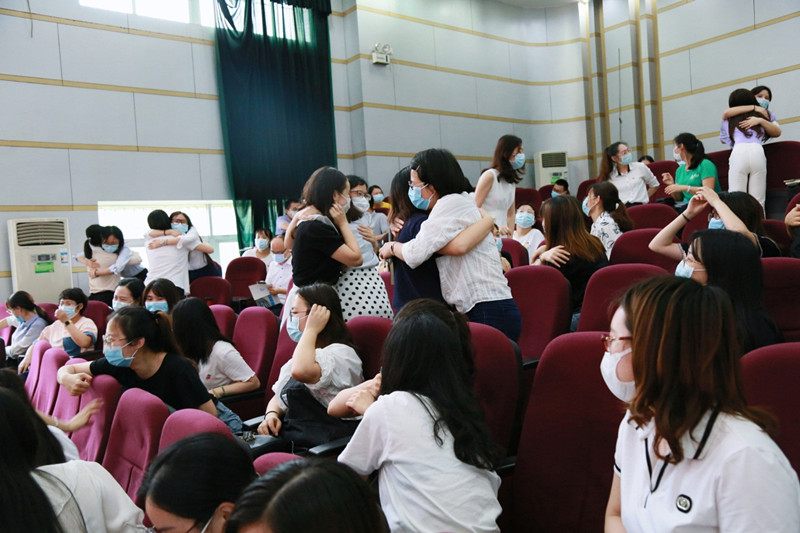 在讲座中,姜老师通过一系列心理团体活动,让所有老师放下了工作压力,从快乐(微笑、拥抱、赞美)、解压(不生气、不抱怨、不计较)等幸福的元素切入,让教师们切身体会了爱、归属与安全感。在场教师互动热烈,全情投入,活动现场不时响起阵阵笑声。理解、接纳、包容、支持的人际氛围让个体的自尊需求在团体的动力被满足。