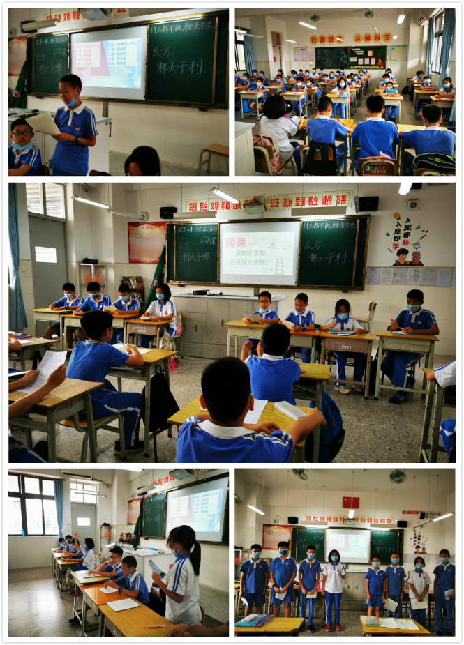 为了锻炼和加强学生的思维逻辑和应变能力,使学生在口才和交际方面有一定的突破和提高,六年级组的老师们精心策划举办了以“网课利大于弊还是弊大于利”为主题的辩论赛。针对论点,各班的选手们都做了充分的赛前准备。站在赛场上的双方选手个个都显得沉着冷静。他们在比赛中滔滔不绝地陈述自己的观点,不断抓住对方辩友提出的观点中的漏洞给予反击,展示了语言的魅力和思维的敏捷。场上不时传出幽默的语言,引得现场掌声不断,喝彩声和笑声不绝于耳。学生们精彩的表现也让老师们感到惊喜,连连称赞。