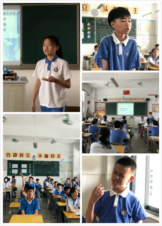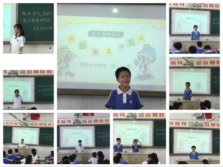 五年级组的老师们经过精心的准备,开展了讲笑话、看图猜成语、绕口令、趣味知识竞答、阅读交流等一系列丰富多彩、形式多样的趣味语文活动。孩子们课前仔细地查找资料,课下进行商量与练习,在台上展演与竞争,活动紧张而有趣,教室里充满了欢乐笑语。同学们让语文走出了课本,走进了生活,真正体验到了快乐学习的真谛。