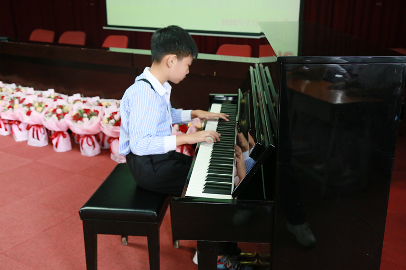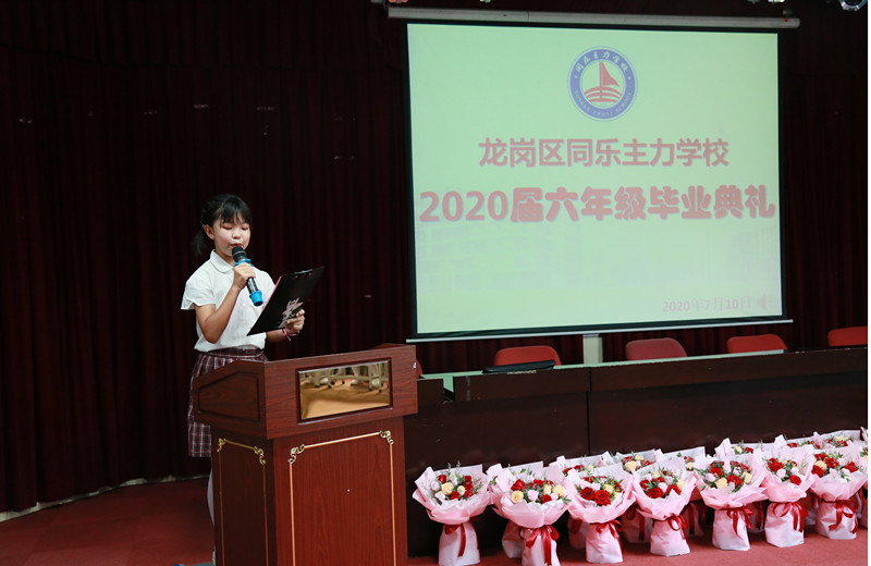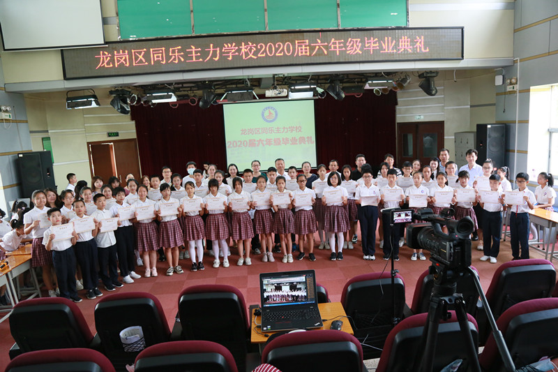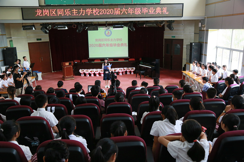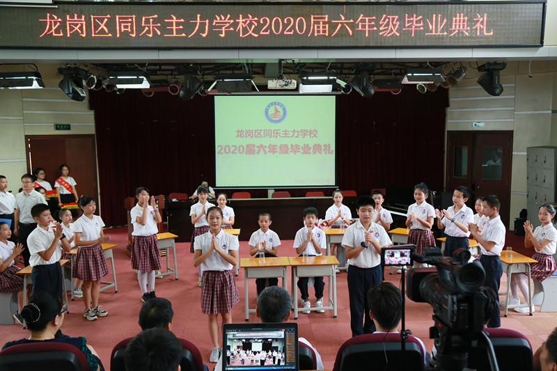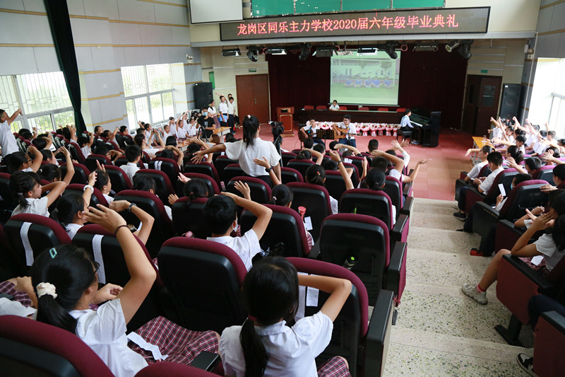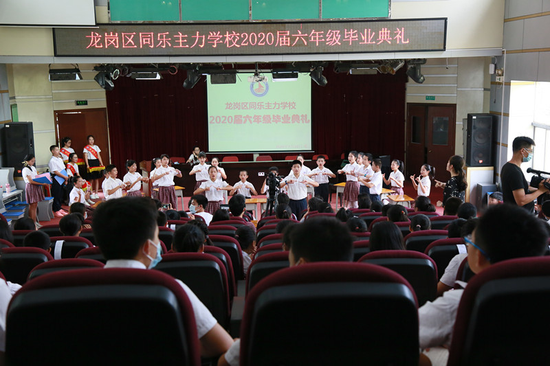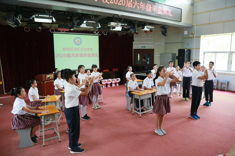 随着婉转动听的钢琴曲《西海情歌》的响起,同乐主力学校2020届小学毕业典礼正式拉开帷幕。接着,悠扬绵长的葫芦丝声让同学们动情不已。随后,优美深情的吉他弹唱《再见》引得在场师生热泪盈眶。在悠扬的乐曲声中,一幅幅往昔的照片不断闪现,讲述着孩子们幸福的校园生活,让孩子们重温了小学六年成长的点点滴滴……全场的孩子们一起歌唱往昔,动情的表演感动着所有到场的人。