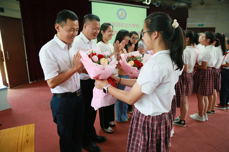为了表达对六年级学生的毕业祝福,同乐主力学校郭庆文校长给同学们送上了最真挚的寄语。他希望同学们带着母校的祝福,带着老师的关爱,带着优异的表现,带着满满的自信升入中学;希望大家继承和发扬母校的精神,在今后的学习和生活道路上,勇于拼搏,积极进取;希望每一位学子扬起理想的风帆,乘风破浪,向着成功的彼岸前进!