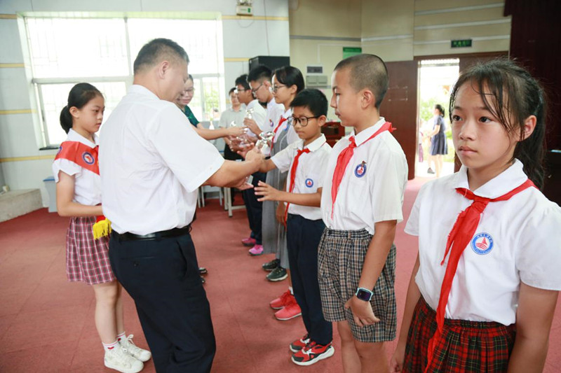 快乐迎暑假,安全记心间。法制辅导员殷克军警官针对疫情防控、防溺水、交通、食品安全、防诈骗等安全问题为孩子上了一课,倡导孩子们注意假期安全,抵制不文明现象,提高安全意识。同时,殷克军警官向毕业生表达祝贺,鼓舞了在场的同学们。