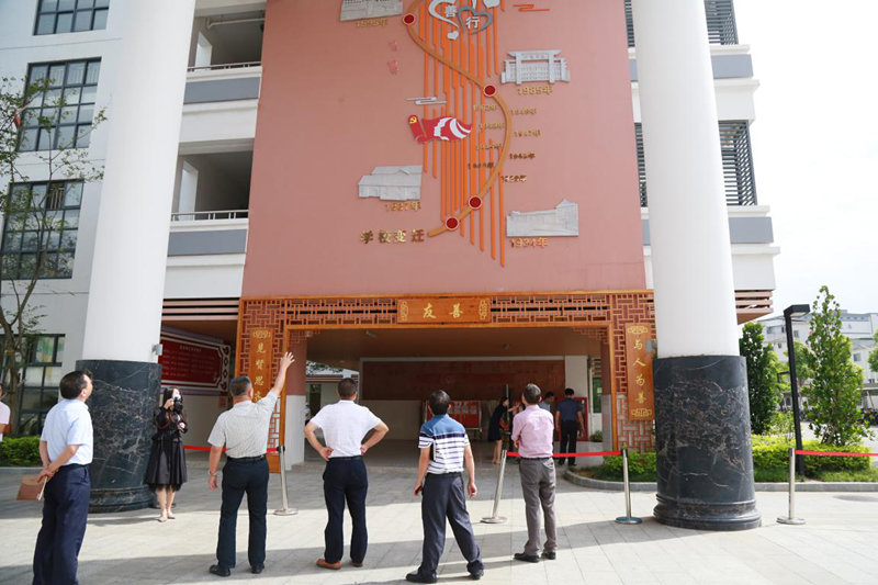 签约仪式结束后,郭庆文校长陪同张德良校长、董国明校长一行参观了我校的文化长廊与果山,介绍了学校的历史变迁。让帮扶学校近距离感受我校浓厚的文化氛围与良好的学习风气。