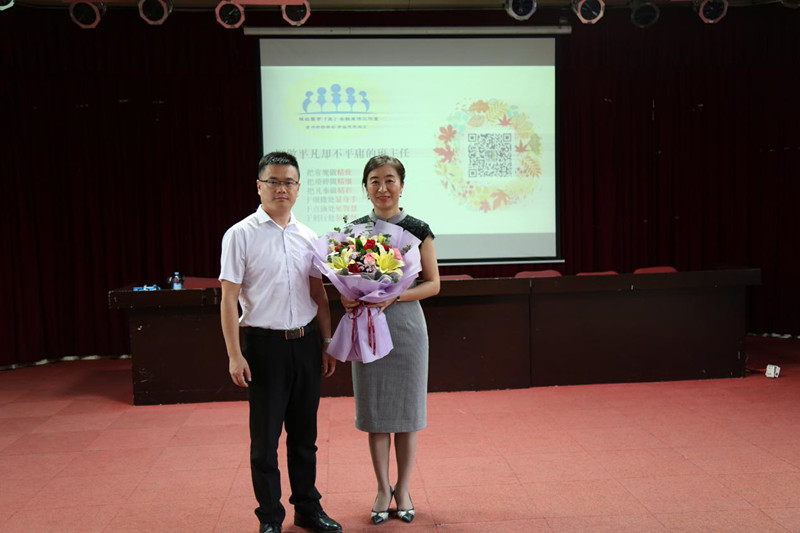 活动最后,我校德育处杨国兴副主任代表学校向陶老师献花,并对陶老师的精彩分享表示感谢。