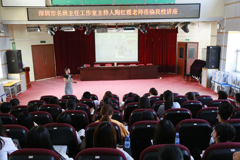 “育人为本”是教育的生命和灵魂,是教育的本质要求和价值诉求。“育人为本、德育为先”是实施教育的主导思想,而在教育队伍中,班主任肩负着立德树人的核心工作。为了提高我校班主任的专业发展,2020年10月12日下午,我校名班主任工作室特邀请深圳市名班主任工作室主持人、南山实验教育集团鼎太小学陶红霞老师为我校全体班主任作题为《做自己的“锦鲤”——班主任专业发展之道》的专题讲座。其中,我校结对帮扶学校凯瑞特学校的老师们也前来学习观摩。