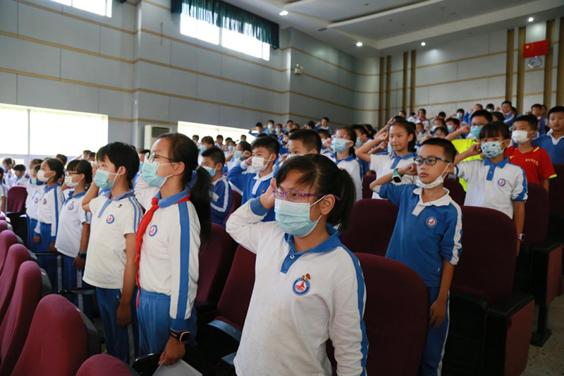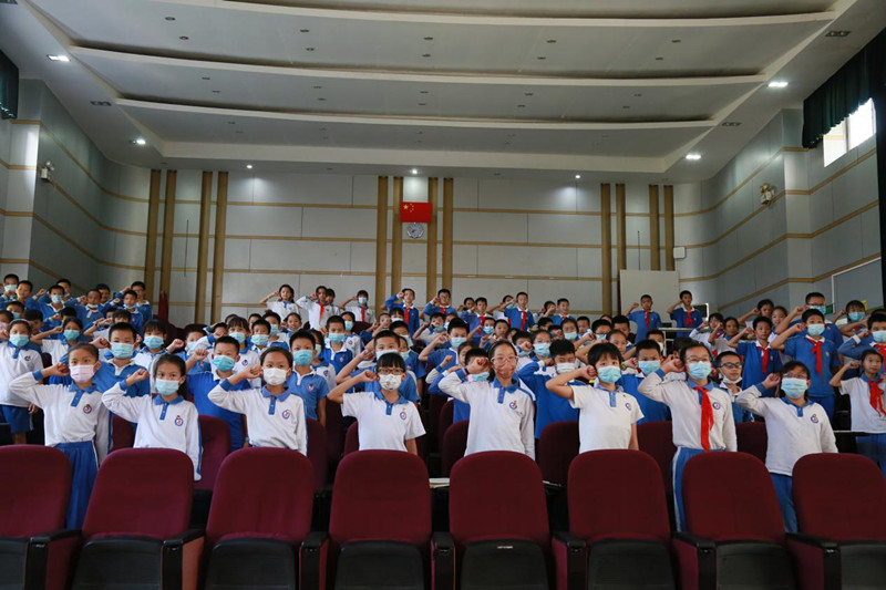 德育处杨国兴副主任以“我光荣,我自豪”为主题进行宣讲。他以古诗《悯农》为引,用当今社会餐饮浪费现象、自身援疆经历为例,提醒每一位主力学子践行文明用餐、“光盘行动”,让孩子们在思想上引起重视,初步了解“光盘行动”的意义。活动的最后,他带领孩子们进行宣誓,引领孩子们为建设文明校园做贡献。