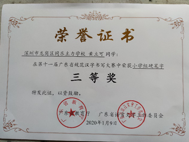 我校积极组织学生参加此次比赛。经过激烈的角逐,六年级黄立可同学、刘椽同学荣获小学组硬笔字三等奖。