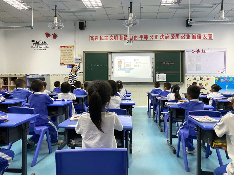 林晓琴老师为二(3)班的孩子们送去了一节生动活泼的英语课《My hair is short》。林老师首先引导孩子们完成了一个有趣的Giant拼图,巧妙地复习了已学的五官单词,引出了关于头部器官的新名词head和hair。从学生介绍自己到Giant介绍自己,新旧知识巧妙融合,突出了本课的重难点,学生有效感知了is和are在句子中用法的区别。林老师的课堂游戏非常精彩,孩子们回味无穷,在轻松的氛围中巩固了本课时所学的知识。同时,小组合作的运用培养了学生良好的沟通和协作能力。